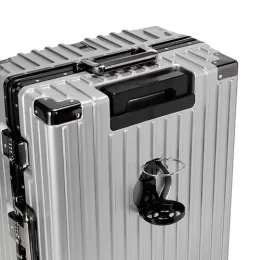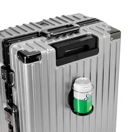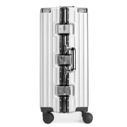 Descrição: Mala de viagem 78 litros feita em plástico com acabamento em alumínio, contém cadeado numérico TSA. Compartimentos internos com bolso telado, bolso plástico para itens molhados e cinta compressora para roupas. A mala possui duas alças de mãos, puxador retrátil com regulagem de tamanho e suporte para celular, suporte porta bolsa, suporte para copo ou garrafa, quatro rodinhas 360º e apoios laterais.