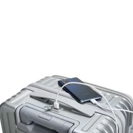 Descrição: Mala de viagem feita em ABS com capacidade de até 33 litros quando o zíper externo de expansão é aberto. Possui abertura frontal com bolsos de zíperes, uma divisória para notebooks de até 15,6 polegadas e cinta compressora para roupas. Conta ainda com cadeado TSA embutido na parte superior, quatro rodinhas giratórias 360°, duas alças de mão, além de apoios e ganchos laterais. Acompanha placa metálica personalizável.