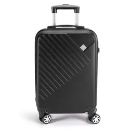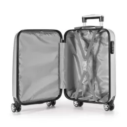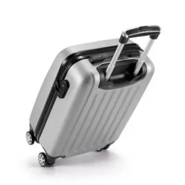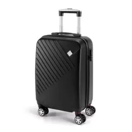 Mala de viagem executivo. ABS. Interior forrado, com divisória. 4 rodas duplas giratórias. Pega extensível em metal, com mola (altura pega estendida até 520 mm). Fecho de segurança com senha. Placa metálica removível, para fácil gravação. Capacidade até 37 L. Peso: 2,50 kg. 355 x 555 x 225 mm | Placa: 29 x 29 mm