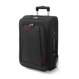 Mala de Viagem. 600D e EVA. Com 2 rodas. Compartimento frontal semi-rígido. Interior forrado. Pega extensível em alumínio, com mola (altura da pega estendida: 505 mm). 340 x 530 x 210 mm