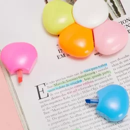 Descrição: Caneta marca texto em formato Flor na cor branca de frente e verso liso, possui as cores: azul, verde, rosa, amarelo, laranja e rosa escuro.