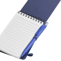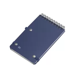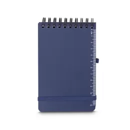 Mini caderno em PP reciclável com suporte para caneta e miolo de 60 folhas branca com pauta.