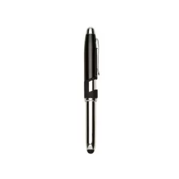 Mini caneta semi-metal colorida com touch, possui detalhes em prata e preto. Clip metal prata com um suporte preto vazado abaixo, basta puxar a parte prata com borracha touch na ponta para utilizar a esferográfica, fica do lado oposto.