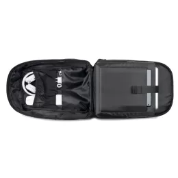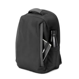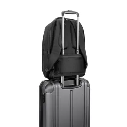 Mochila antirroubo com design único pensado para garantir maior segurança aos seus dispositivos e documentos. Composta em poliéster reciclado (rPET) 600D twill, resistente à água, com detalhes em PU e interior em poliéster reciclado (rPET) 210D. Possui um compartimento principal com bolso almofadado para notebook até 17.3″ e para tablet até 10.5″, bolsos laterais e um compartimento frontal. A mochila oferece-lhe um maior conforto nas suas viagens devido à sua pega superior almofadada e parte posterior com acolchoamento extra e alça para trolley com bolso para pequenos objetos. Os bolsos internos facilitam na arrumação e organização do seu material. Capacidade até 20 L. 310 x 450 x 200 mm