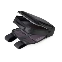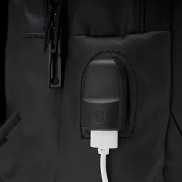 Descrição: Mochila confeccionada em Couro Sintético com compartimento para notebook até 15,6 polegadas. Contém Dois compartimentos grandes sendo um com divisórias para documentos, eletrônicos e caneta, e um com divisória para Notebook até 15,6 polegadas. Três compartimentos frontais, nos quais 2 possuem abertura vertical, e um abertura horizontal. Tecido Impermeável. Compartimento traseiro para ocultação das alças de ombro. Bolso lateral e adaptador USB externo com cabo acoplado, permitindo a conexão de um carregador portátil de dentro da mochila e transferência da carga para o lado externo, ocultando o carregador e viabilizando a utilização do celular durante o processo. Contém zíperes com pegadores metálicos, alça de mão em nylon, alças para as costas ajustáveis com revestimento espumado antitranspirante e alça lateral que possibilita que a mochila seja carregada como uma pasta.