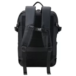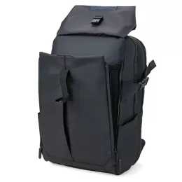 Descrição: Mochila de 30 Litros confeccionada em couro sintético resistente à água. Contém três compartimentos, sendo um deles exclusivo para acomodar capacete de bicicleta e outro para notebook de 15,6″ com revestimento aveludado. A mochila possui faixa e detalhes refletivos, bolsos externos nas laterais, bolso interno de plástico exclusivo para itens molhados, bolso interno de tela, alça para engate em mala de viagem, alça regulável revestida com espuma, parte traseira também revestida com espuma para maior conforto e fivelas para melhor expansão e segurança da mochila.