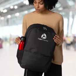 Descrição: Mochila de poliéster 27 litros com dois compartimentos, sendo o principal com bolso para notebook 156. A mochila possui bolsos laterais em malha e área costada com revestimento espumado.