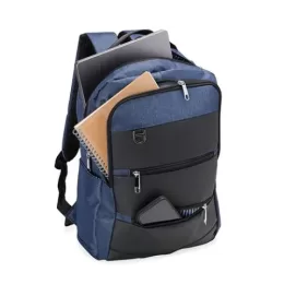 Descrição: Mochila de nylon 26 Litros com detalhes em couro sintético e quatro compartimentos, sendo o principal com bolso para notebook 15,6. Com divisórias internas para acessórios, a mochila possui bolso lateral, suporte externo USB e alça para engate em malas de viagem.