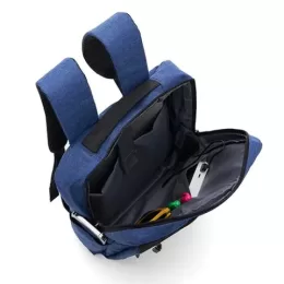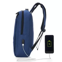 Descrição: Mochila confeccionada em nylon com compartimento para notebook até 15,6 polegadas. Contém compartimento grande com divisórias para documentos, eletrônicos e caneta, dois compartimentos frontais com abertura horizontal, bolso lateral e adaptador USB externo com cabo acoplado, permitindo a conexão de um carregador portátil de dentro da mochila e transferência da carga para o lado externo, ocultando o carregador e viabilizando a utilização do celular durante o processo. Contém zíperes com pegadores plásticos, alça de mão em nylon e alças para as costas ajustáveis com revestimento espumado antitranspirante.