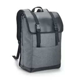 600D de alta densidade e tarpaulin. Com 2 compartimentos. Compartimento posterior forrado, com diversos bolsos interiores e 2 divisórias almofadadas para notebook até 17” e tablet 10.5”. Compartimento frontal forrado, ideal para transporte de roupa (ou para lazer). Bolso frontal. Parte posterior e alças almofadadas. 300 x 430 x 150 mm