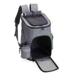 Descrição: Mochila para transporte de pets, confeccionada em tecido Oxford, apresenta um compartimento lateral e bolsos adicionais. Seu tapete dupla face, com uma camada aveludada, foi projetada para garantir o máximo conforto ao pet. Equipada com telas respiráveis em nylon, esta mochila possui duas aberturas superiores: uma completa e outra parcial, com cobertura ajustável. Além disso, conta com uma abertura frontal parcial e um fundo com abertura completa, proporcionando uma experiência de transporte arejada e prática para entrada e saída do pet. A mochila dispõe de alça de mão e alças para as costas revestidas com material respirável.