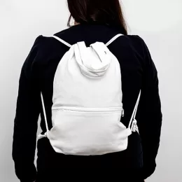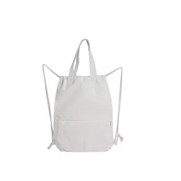 Liberdade para usar como quiser. Nossa mochila versátil, feita em lona resistente, é perfeita para as necessidades do dia a dia, podendo ser usada tanto nas costas ou através de suas alças, transformando-a em uma sacola estilosa. Além disso, possui um amplo espaço no compartimento principal, fechado pelas alças de cordão, e conta com um bolso frontal com zíper, garantindo a segurança dos pertences.