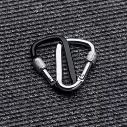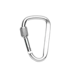 Mosquetão de alumínio com trava em relevo(basta rotacionar compartimento), possui lateral reta ideal para personalização.