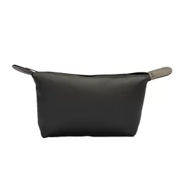 Descrição: Nécessaire em couro sintético impermeável e fechamento em zíper e detalhe frontal metálico.