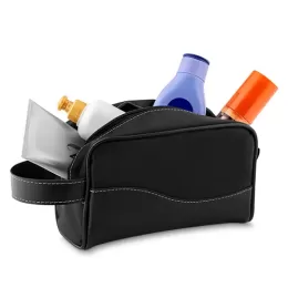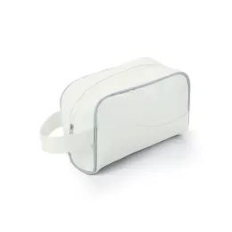 Nécessaire em PU no tecido externo e forro sintético Bidim, e alça lateral, Gravação frontal na opções: serigrafia e plaquinha.