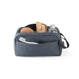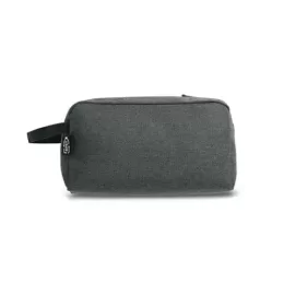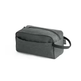 Nécessaire em rPET 600D com interior forrado. Bolso frontal com ziper e pega lateral em webbing. 220 x 120 x 110 mm