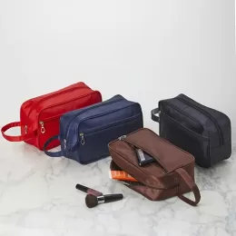 Descrição: Nécessaire Poliéster resistente à água. Possui alça lateral, compartimento principal superior e outro frontal.