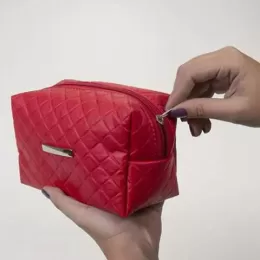 Necessaire puff matelassê, material em couro sintético. Possui uma plaqueta prata no centro para gravação.