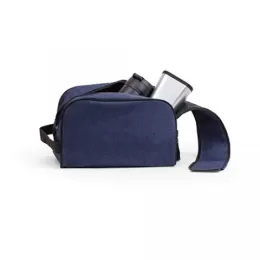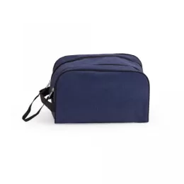 Necessarie tecido polyester, cursor duplo para fechamento com alça, trava com velcro, alça de mão, gravação Frontal.