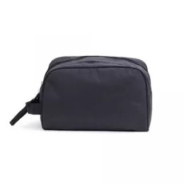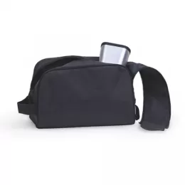 Necessarie tecido polyester, cursor duplo para fechamento com alça, trava com velcro, alça de mão, gravação Frontal.