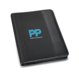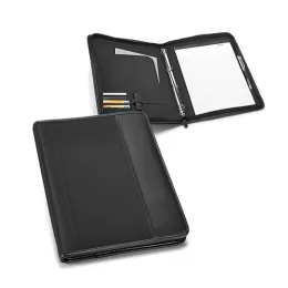 Pasta A4 em Couro Sintético e Microfibra. Com 4 argolas de 20 mm para folhas A4. Bloco: 20 folhas pautadas. Pen drive não incluso.