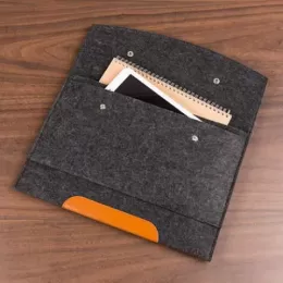 Pasta Envelope com forro e uma divisória. Tecido de feltro com detalhe em couro sintético e dois botões pretos superiores. Acompanha placa metálica para personalização.