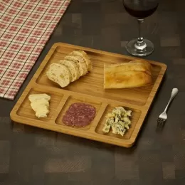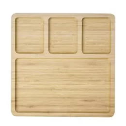 Descrição: Petisqueira de bambu quadrada com 4 divisórias.
