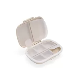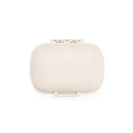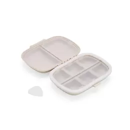 Descrição: Porta-comprimidos compacto feito em plástico obtido da palha de trigo e anel de vedação para as bordas em silicone. Possui oito compartimentos com tampas removíveis, sendo dois maiores com capacidade de até 30ml e seis menores com até 10ml cada. Acompanha palheta multiuso.