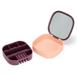 Descrição: Nosso Porta-jóias organiza seus acessórios de forma prática e compacta. Produzido em plástico, é a escolha ideal para manter anéis, brincos, batom e pulseiras sempre acessíveis. Com 7 compartimentos estratégicos para guardar tudo, feitos em material macio e emborrachado, removíveis para facilitar a limpeza, ele também conta com um espelho na tampa, facilitando na hora de montar looks com as jóias. Perfeito para quem valoriza organização, autocuidado e praticidade no dia a dia.