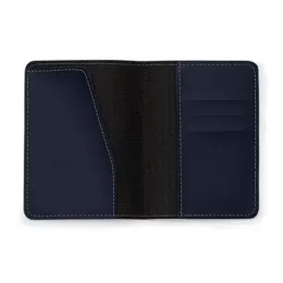 Porta passaporte Bidins em couro sintético, possui três compartimentos na lateral para cartões.