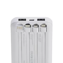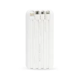 Descrição: Carregador portátil power bank com 10.000mAh e carregamento via indução ou via cabo. Com display digital indicador de bateria, o carregador contém quatro cabos acoplados: Lightning, Tipo-C, V8 e saída USB para o carregamento da própria bateria. Portas de entrada: V8, Tipo-C e duas portas USB.
