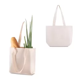 Sacola em Algodão 120g/m² (23x32x10cm) AI-BAC013 com sua marca. Ideal para organizar e transportar itens com conforto e segurança. Um presente útil que transmite praticidade e sofisticação. Clique e valorize sua marca!