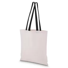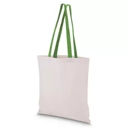 Sacola em algodão cru 140g/m² com alça colorida em algodão liso. Alça com altura de 29 cm, ideal para transporte.
