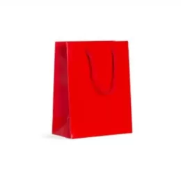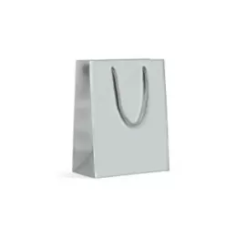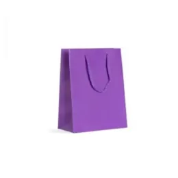 Sacola em papel Duplex Colorido 190 g/m² com alças de cordão polipropileno. Sem fundo reforçado.