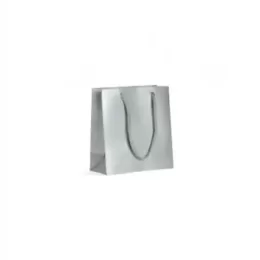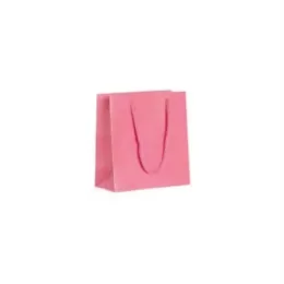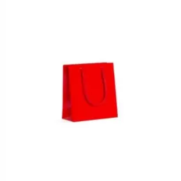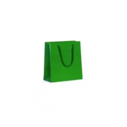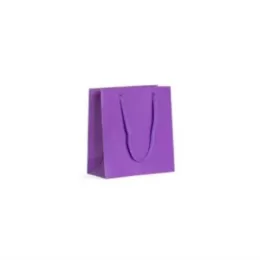 Sacola em papel Off-Set Colorido 190 g/m² com alças de cordão polipropileno. Sem fundo reforçado.