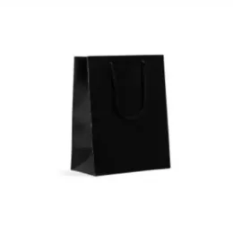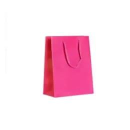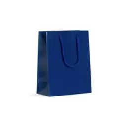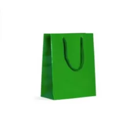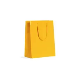 Sacola em papel Off-Set Colorido 190 g/m² com alças de cordão polipropileno. Sem fundo reforçado.