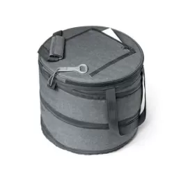 Sacola térmica flexível. 600D. Com zíper duplo, interior forrado com PEVA e abridor de garrafas. Bolso superior com zíper. Alças em webbing, com reforço. Capacidade até 15 L. Food grade. ø300 x 260 mm