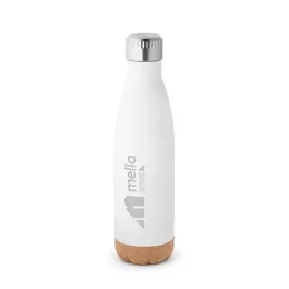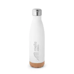 Squeeze em aço inox e base em cortiça com parede dupla com isolamento a vácuo. Mantém as bebidas quentes por 8h e frias por 24h. Tem capacidade até 560 ml. Food grade. Fornecido em caixa. ø66 x 258 mm