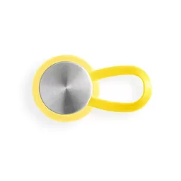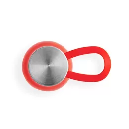 Squeeze produzido a partir de plástico reciclado, rPET. Com alça de silicone para facilitar o transporte. Tampa em PP e aço inox com isolante em silicone. Capacidade até 590 ml. ø66 x 230 mm