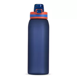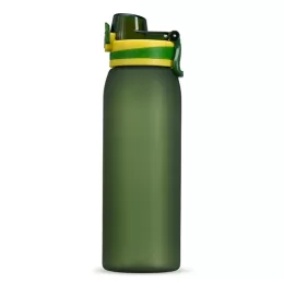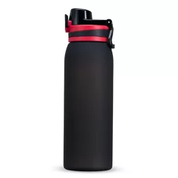 Descrição: Squeeze plástico com capacidade de 900ml. Possui tampa rosqueável com tampa protetora para bocal, trava de segurança com botão de acionamento e alça para transporte. Pintura fosca.