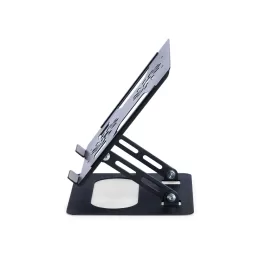 Descrição: Suporte articulado para notebooks com ajuste em diversos ângulos para alcançar uma melhor posição de uso do aparelho com mais conforto e ergonomia nos mais variados ambientes, como escola, trabalho ou em casa. A construção funcional em aço do suporte e suas aberturas nas laterais e no centro ajudam na dissipação de calor do aparelho aliada com as tiras antiderrapantes nas laterais e nas bordas inferiores garantem um uso mais seguro e estável do eletrônico.