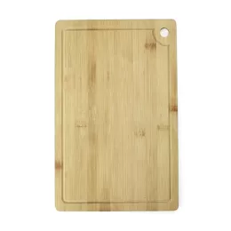 Descrição: Tábua de corte em bambu com canaleta e acesso para gancho.