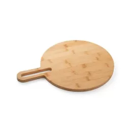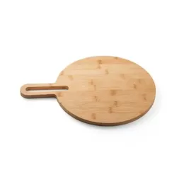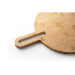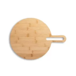Tábua de servir em bambu com pega, de grande dimensão e de utilização versátil. Ideal para pizza. Fornecido com caixa presente de papel craft. 310 x 408 x 12 mm