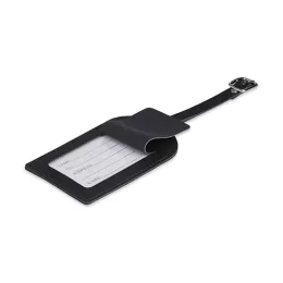 Descrição: Tag identificador de bagagem em couro sintético. Parte frontal com abertura para visor plástico e verso liso, possui fivela regulagem.