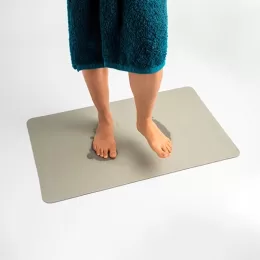 Descrição: Secagem rápida e aderência antiderrapante! Nosso tapete ecológico é a solução ideal para acabar com o piso molhado após o banho. Feito com lama de diatomáceas, ele absorve rapidamente a água e retorna ao seu estado natural em poucos minutos. Produzido com materiais naturais, o tapete oferece propriedades antibacterianas e antimofo, além de uma base antiderrapante que garante total segurança no uso.