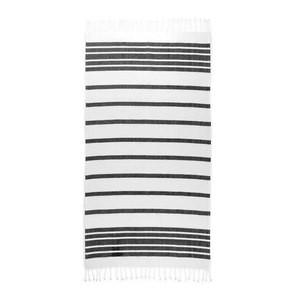 Toalha de praia em algodão 70% reciclado e poliéster 30% reciclado (180 g/m²), com um design minimalista e elegante para os seus dias de praia. 900 x 1700 mm