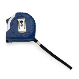 Trena de 5 metros colorida emborrachada com relevo e detalhe plástico branco. Possui trava, prendedor de metal em um dos lados e acompanha cordão de nylon.