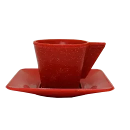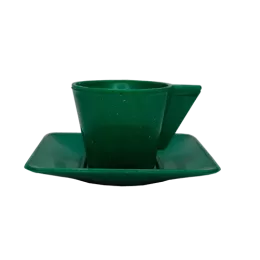 Xícara café com pires Green Colors, feito com 50% de fibra natural de madeira de reflorestamento, disponível em 6 cores especiais que utilizam pigmentos orgânicos na fabricação. Design exclusivo do Grupo BB. É resistente a microondas e a máquina de lavar.